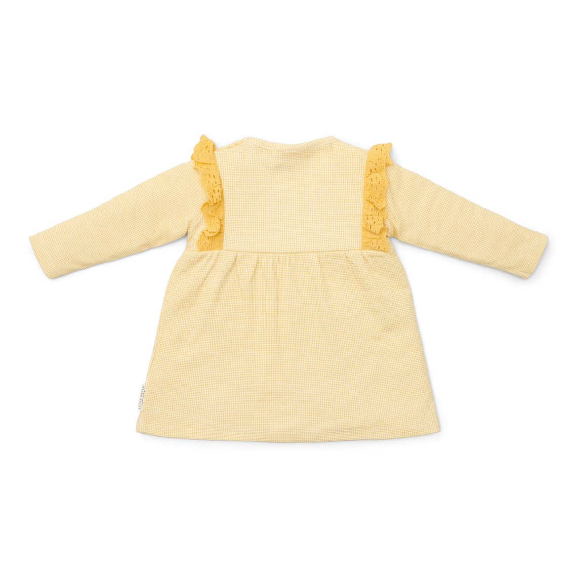 Fröhliche Karos! Der warme, gelb karierte Allover-Druck dieses entzückenden Kleides verschönert jeden Tag mit seinem sonnigen Charme. Das charmante Design mit süßen Rüschen an den Schultern und zarten Broderie-Anglaise-Details verleiht dem Kleid eine verspielte und zugleich elegante Note. Dieses Kleid aus Baumwolle (Bio) umhüllt Ihr Kind mit Weichheit und Stil und sorgt den ganzen Tag über für Komfort. Es lässt sich mühelos mit allen Teilen der koordinierten Little Farm-Kollektion mischen und kombinieren. Erhältlich in den Größen 44, 50, 56, 62, 68 und 74. Waschanleitung: Maschinenwäsche bei 30°C im Schonwaschgang, bei niedriger Temperatur auf links bügeln, nicht chemisch reinigen, nicht bleichen, nicht im Trockner trocknen Farbe: Gelb Material: 100% Baumwolle (Bio)