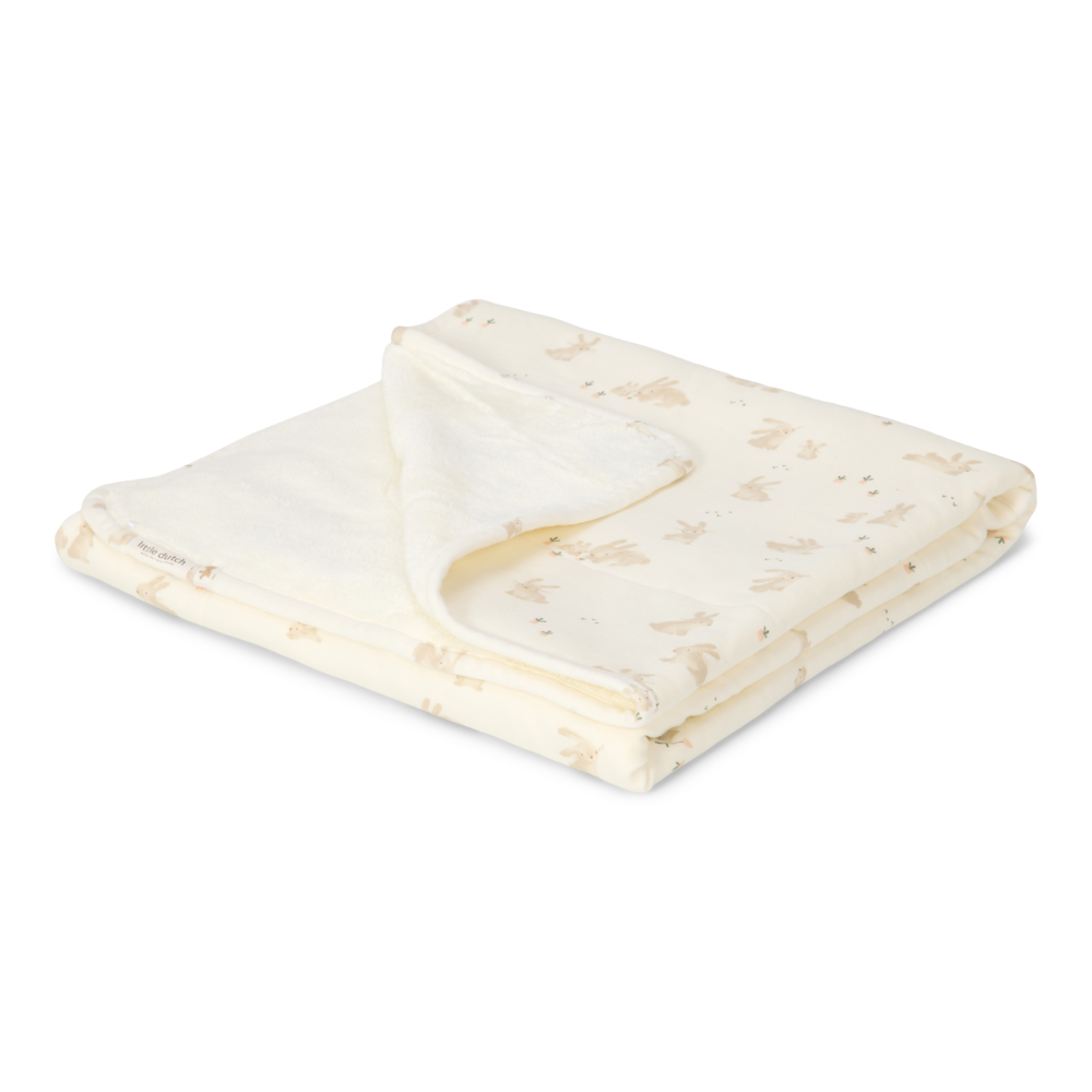 Eine wunderschöne Babybettdecke, die Ihr kleines Liebling angenehm warm hält. Mit weichem Jersey auf der einen Seite und kuscheligem Fleece auf der anderen ist diese Decke vielseitig einsetzbar – als Wickeltuch, Tagesdecke oder sogar als Spielunterlage. Dieses Modell aus der Baby Bunny-Kollektion ist mit niedlichen Häschenmotiven verziert und vereint nostalgischen Charme mit einem frischen, modernen Touch. Sie besteht aus 100 % Bio-Baumwolle und besitzt einen TOG-Wert von 2,5 – perfekt für kühle Nächte. Und das Praktische: Die Decke lässt sich einfach bei 30 Grad in der Waschmaschine reinigen!