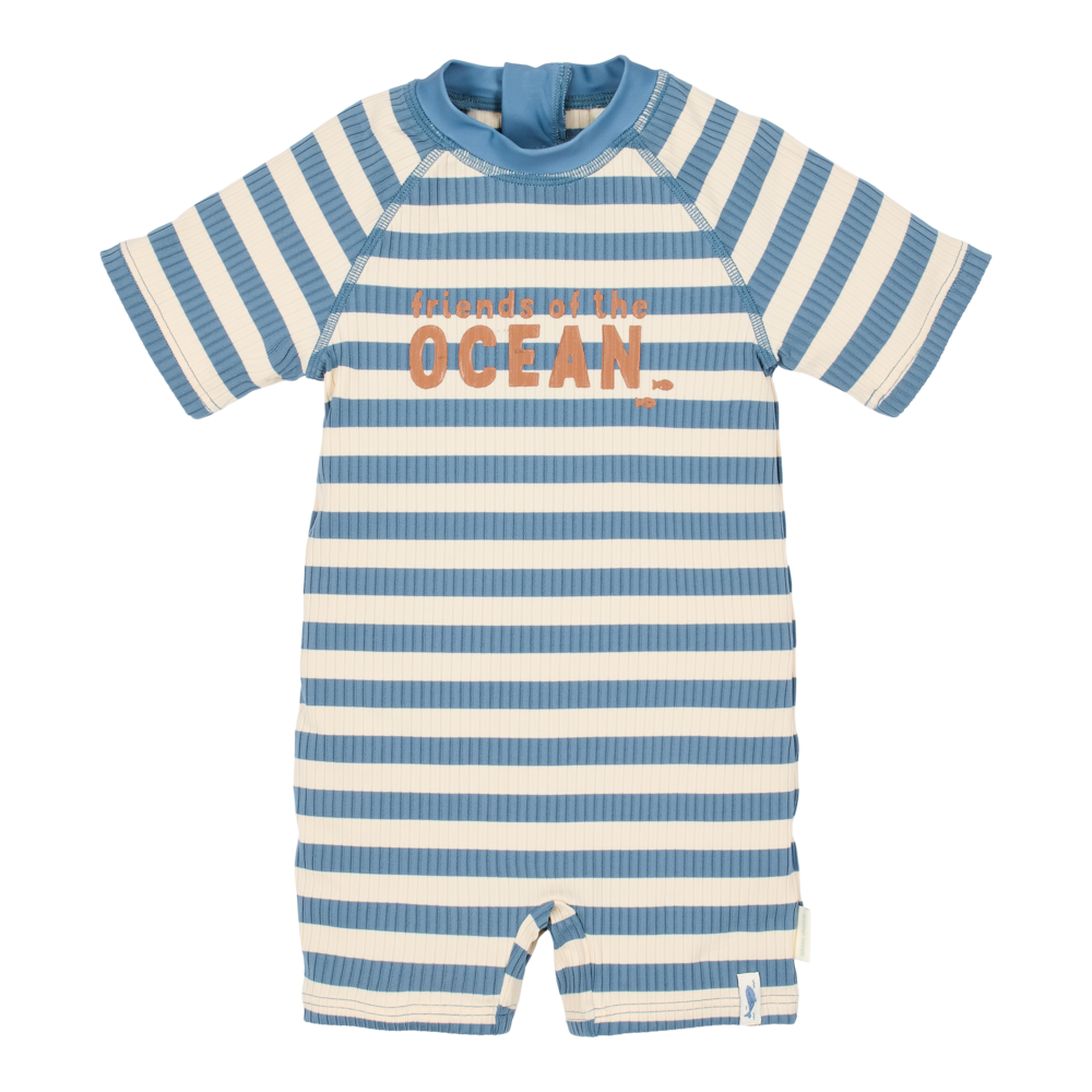 Short Sleeve Swimsuit Ocean Blue Stripes - 86/92
