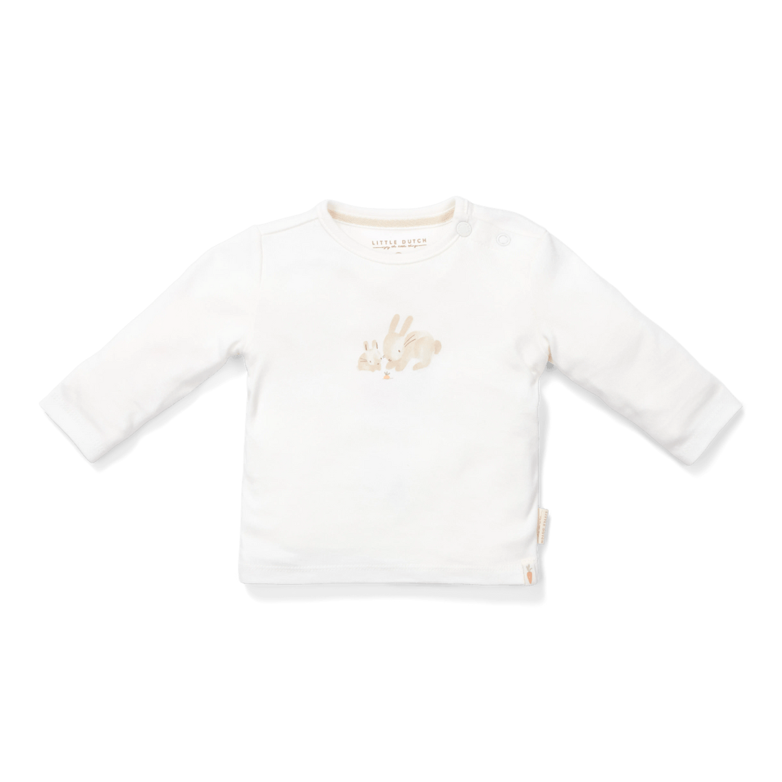 Wie süß ist dieses weiche T-Shirt mit Hasenaufdruck! Das cremefarbene Shirt ist mit unserem Baby Bunny-Print bedruckt und besteht aus wunderbar weicher Baumwolle (Bio). Das Shirt hat Druckknöpfe an einer Schulter für einfaches An- und Ausziehen. Das Shirt hat ein Etikett mit dem Little Dutch-Logo und dem Karottensymbol. Kombinieren Sie das Shirt mit einer süßen Hose und einer Strickjacke aus unserer passenden Babykollektion. Erhältlich in den Größen 44, 50, 56, 62, 68 und 74. Farbe: Weiß Material: 100% Baumwolle Bio