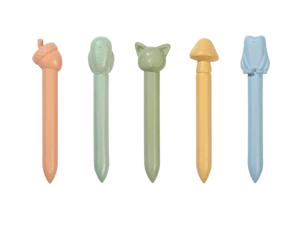 Zeit, gemeinsam die Welt der Farben zu entdecken! Mit diesen fröhlichen Wachsmalstiften in Form von Waldfreunden gestaltet dein Kind die schönsten Kunstwerke. Ein Füchslein, ein Eulchen, ein Pilz … lauter Figuren zum Liebhaben. Die Stifte sind leicht von kleinen Händen zu greifen und fördern spielerisch die Feinmotorik. Ob dein Kind nun kritzelt, malt oder ein echtes Kunstwerk erschafft – mit den sanften Farben und den vertrauten Formen wird jede Zeichnung zu einem Abenteuer.Das set besteht aus 5 Stiften Die Wachsmalstifte sind sicher im Gebrauch und bereits ab 2 Jahren geeignet. Ideal für kreative Momente zu Hause oder unterwegs. Lass dein Kind spielerisch entdecken, gestalten und genießen – mit den Forest Friends von Little Dutch.