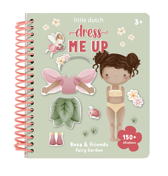 Rosa & Friends Fairy Garden Dress-up Buch mit Ringbuch. Enthält 24 Seiten mit Modellen und Landschaften und 12 Stickerblätter mit Outfits und Accessoires. Mit festem Einband, ideal für zu Hause und unterwegs.