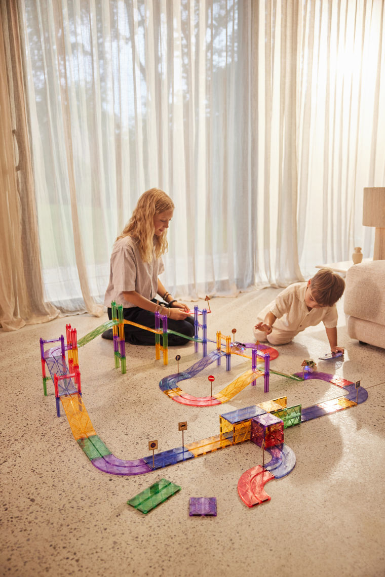 Unendlichen, grenzenlosen Rennspaß bietet dieser 80-teilige Autobahn-Bausatz von Cleverclixx. Mit dem tollen Bausatz in knalligen Farben baut Ihr Kind auf verschiedenen Ebenen die coolsten Rennstrecken. Für besonderen Spielspaß werden Verkehrsschilder, ein Auto und Pfeiler mitgeliefert.