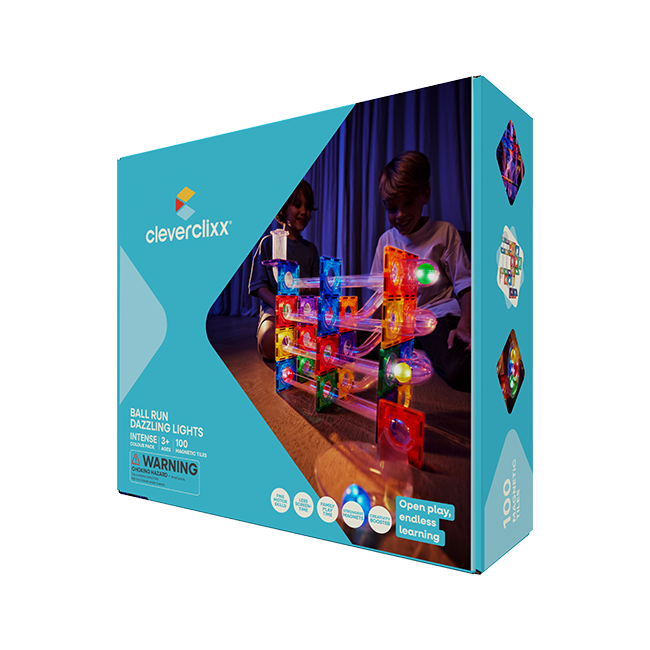 Eine supertolle Kugelbahn lässt sich mit diesem 100-teiligen Lichteffekt-Bausatz von Cleverclixx bauen. Mit diesem Set ist Ihr Sohn oder Ihre Tochter bereit für den Bau der coolsten Murmelbahn und den Start ins Rennen. Ihr Kind kann beim Entwickeln toller Konstruktionen und Spielideen mit seinen Lieblings-Cleverclixx seiner Kreativität und Fantasie freien Lauf lassen.