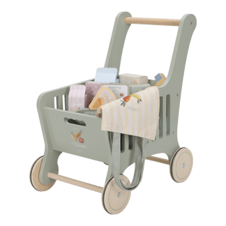 Einkaufen macht jetzt noch mehr Spaß! Mit diesem Holz-Spielkaufladenwagen bekommst du alles, was du brauchst. Dank des großzügigen Stauraums passen alle deine Einkäufe hinein, selbst wenn deine Liste lang ist. Die Holzklammer hält deine Einkaufsliste sicher an ihrem Platz, sodass du nichts vergisst. Das Set enthält verschiedene Lebensmittelprodukte und eine Einkaufstasche, damit du sofort loslegen kannst. Der Wagen ist mit einer hübschen Illustration auf der Vorderseite verziert, die das Spielen noch unterhaltsamer macht. Möchtest du das ultimative Einkaufserlebnis? Kombiniere den Wagen mit dem Marktstand und genieße endloses Einkaufen!