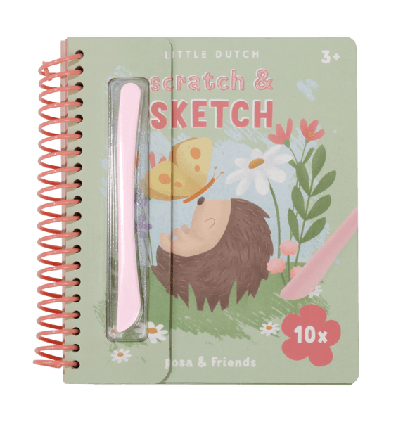 Mit dem Little Dutch Rosa & Friends Kratz- und Skizzenbuch kannst du unendlich kreativ werden! Das Buch enthält 8 Kratzseiten mit den süßesten Tieren aus dem Blumengarten und 2 Kunststoff-Kratzseiten, auf denen du mit den mitgelieferten Schablonen deine eigenen schönen Kreationen machen kannst. Auf der Rückseite der Kratzseiten findest du eine Ausmalseite zum Ausmalen mit deinen eigenen Stiften und Wachsmalkreiden. Das Buch enthält einen Kratzstift, mit dem man die Zeichnungen auskratzen kann und den man nach Gebrauch einfach im Buch aufbewahren kann. Das Buch besteht aus stabilem Karton mit den bekannten Little Dutch Motiven und Farben und ist mit einem praktischen Ringbuch versehen. Die ideale Beschäftigung für zu Hause und unterwegs!