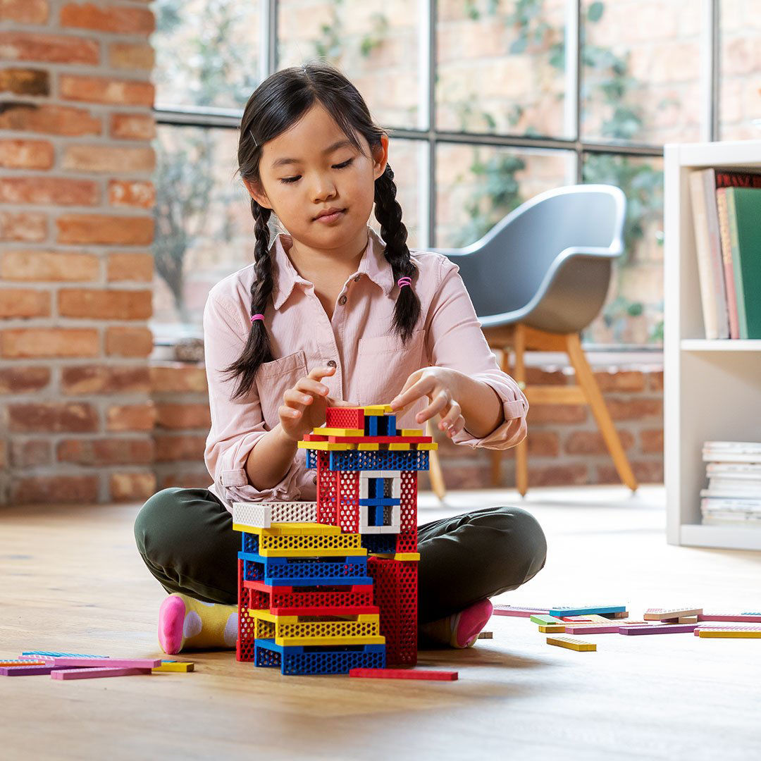 Auf die Plätze … fertig … losbauen! Wie schon der Name „Start Box“ vermuten lässt, handelt es sich hier um eine Zusammenstellung von 70 Bioblo-Bausteinen, mit der man zu Beginn seiner Bioblo-Baukarriere bestimmt nichts falsch macht. Der „Basic Mix“ enthält neben den drei elementaren Grundfarben Rot, Gelb und (Dunkel-)Blau auch noch 10 weiße Steine und bietet somit die perfekte Startposition für ein kreatives und pädagogisch wertvolles Bau-Spiel! Maße (L x B x H): 22 x 22 x 9,5 cm Gewicht: ca. 1,25 kg