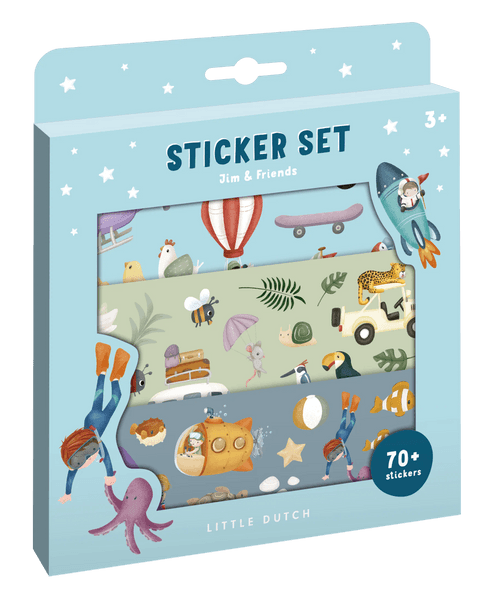 Schöne Little Dutch Stickerset Box mit 3 Blättern mit Stickern von Jim und seinen Freunden. Perfekt für jeden Bastelspass.