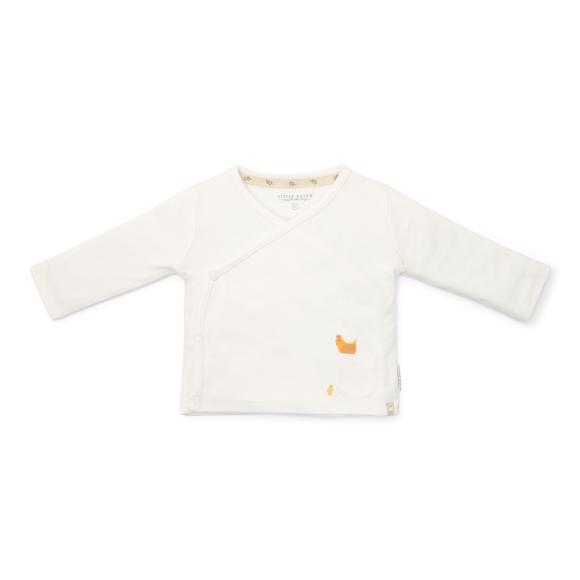 Dieses T-shirt zeigt eine entzückende, vom Bauernhof inspirierte Szene mit einem Huhn und seinem Küken. Das Wickel-Design sorgt für müheloses An- und Ausziehen. Holzknöpfe und eine kleine Tasche am unteren Rand sorgen für rustikale Eleganz, während sie den Wickel an Ort und Stelle halten. Kombinieren Sie es mit anderen Teilen aus der koordinierten Little Farm Kollektion. Hergestellt aus Baumwolle (Bio) und erhältlich in den Größen 44, 50, 56, 62, 68 und 74. Waschanleitung: Maschinenwäsche bei 30°C im Schonwaschgang, bei niedriger Temperatur auf links bügeln, nicht chemisch reinigen, nicht bleichen, nicht im Trockner trocknen